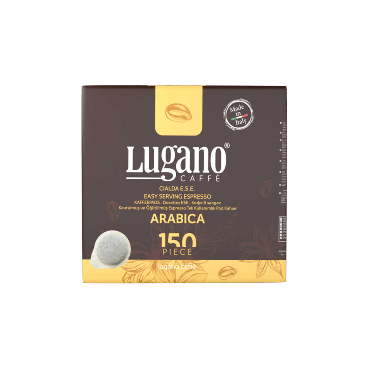 Lugano Caffè Arabica E.S.E. Espresso Pods are 100% crafted primarily from premium Arabica coffee beans, resulting in a smooth and sweet flavor.