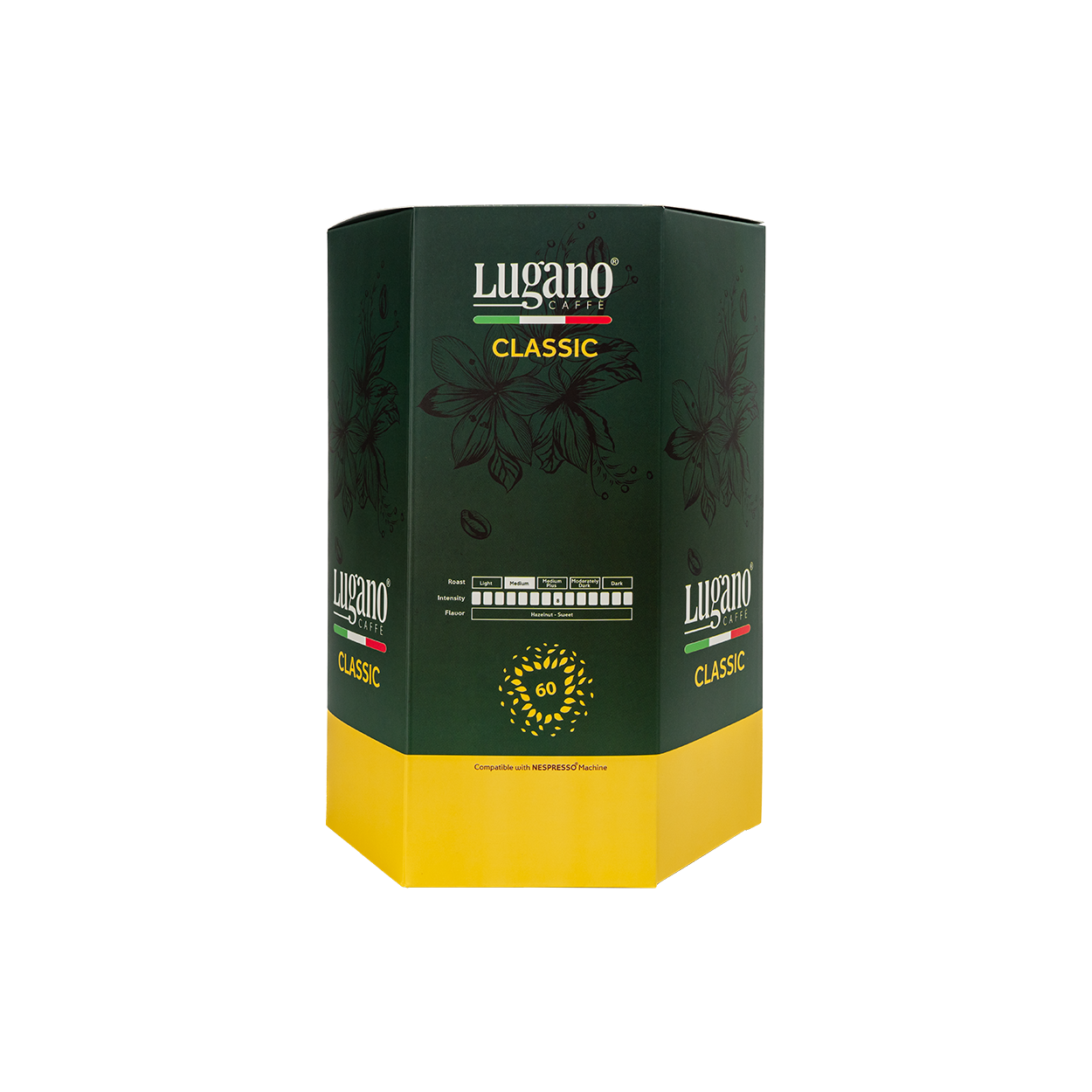 Lugano Caffè Classic Espresso Capsules have a balanced blend of high-quality Arabica and Robusta coffee beans. The classic capsule is distinguished by its attractive and strong aroma.