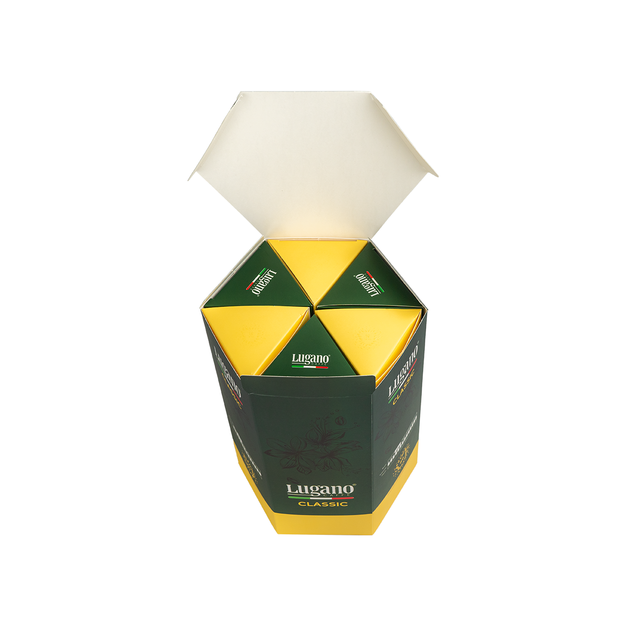 The product comes in a hexagonal pack of 60 capsules (6 triangular packs * 10 pcs. flushed with N-gaz technique). Capsule Net Weight: 5.5 gr /0.17 oz – Capsule Diameter: 3.6 cm. Capsule Materials: PP plastic sealed with an aluminum lid.