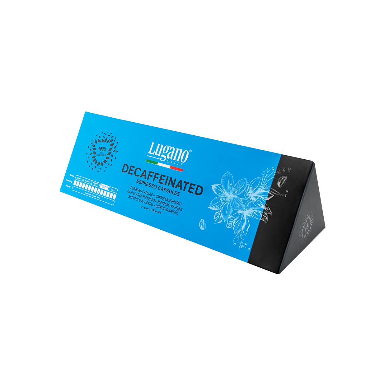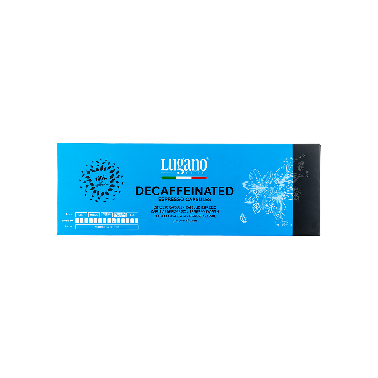 The amount of caffeine in Lugano Caffè Decaffeinated Espresso Capsules doesn’t exceed 0.10%. Although most of the caffeine is extracted from the beans, you can still enjoy that rich coffee taste, thanks to our unique decaffeination methods.