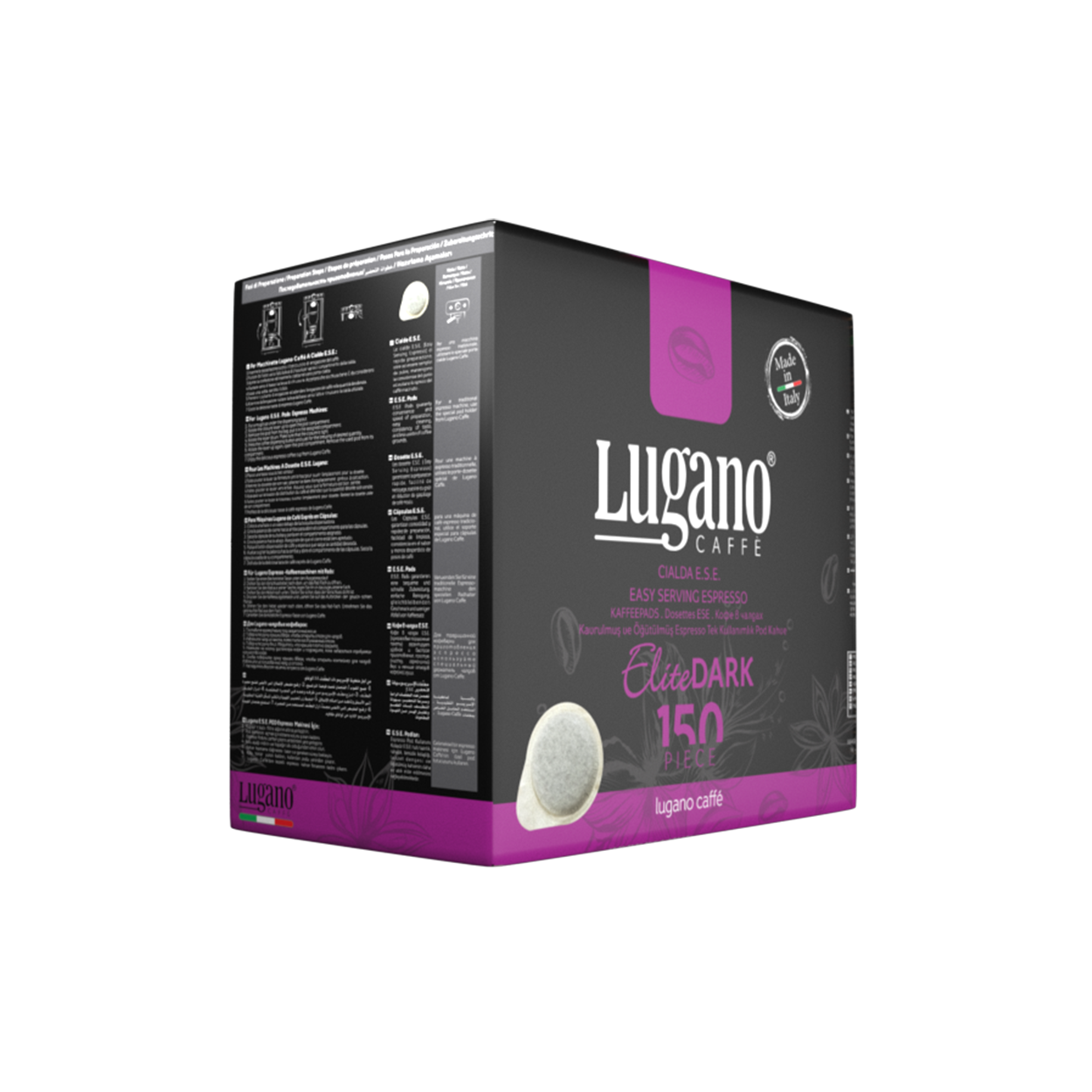 Lugano Caffè E.S.E. Pods are crafted using 100% biodegradable materials like paper and cornstarch. This ensures a guilt-free coffee experience, allowing you to savor delicious espresso while caring for the environment.